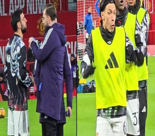 赛前被队友暴击,热身时B费被利马的一脚传球砸到流鼻血